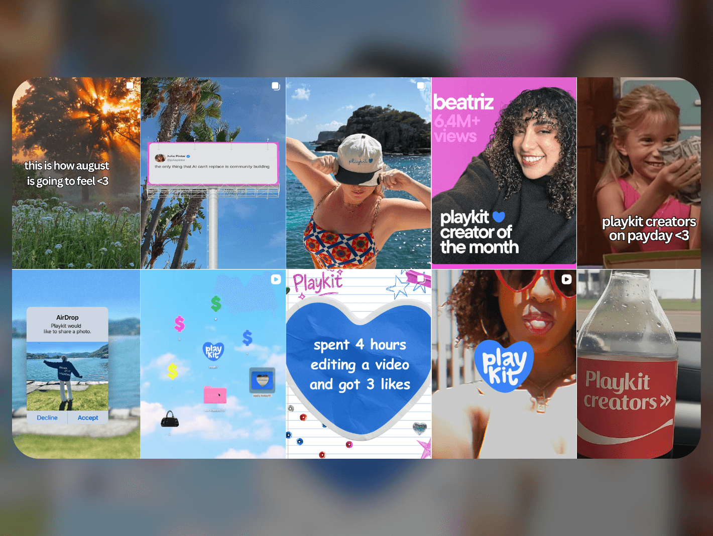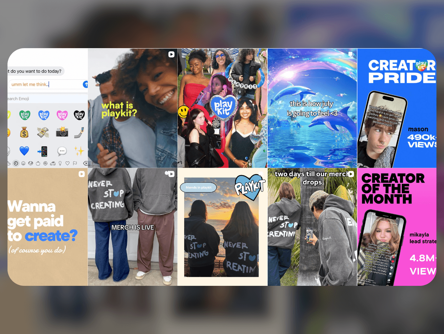 At Playkit, I helped shape the brand’s social presence to connect with Gen Z college students by shifting the content strategy from purely educational posts to a more lifestyle-driven, community-focused approach. My work focused on making Playkit feel authentic and culturally relevant while highlighting how easy it is for creators to earn through the platform.